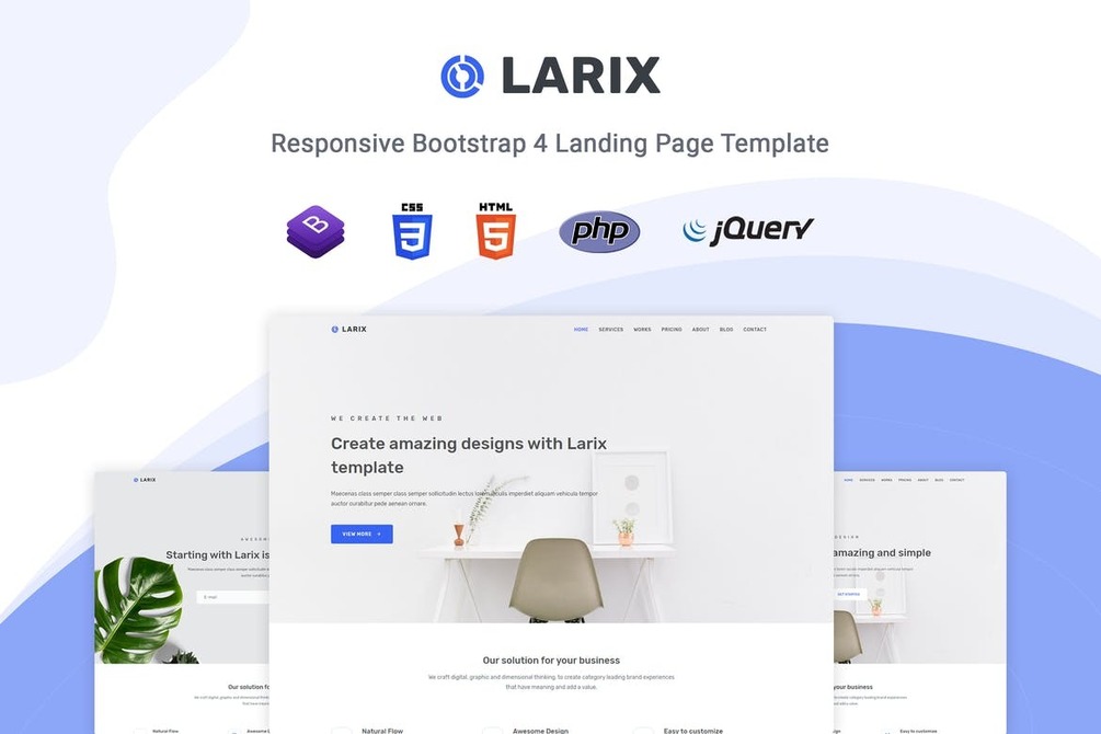 Larix is a minimal one-page responsive HTML5 Template. The template design is simple, clean and modern. Show off your work with this easy-to-customize and fully featured site template. This template suits for any type of portfolio, personal website, business, corporate, design studio etc.