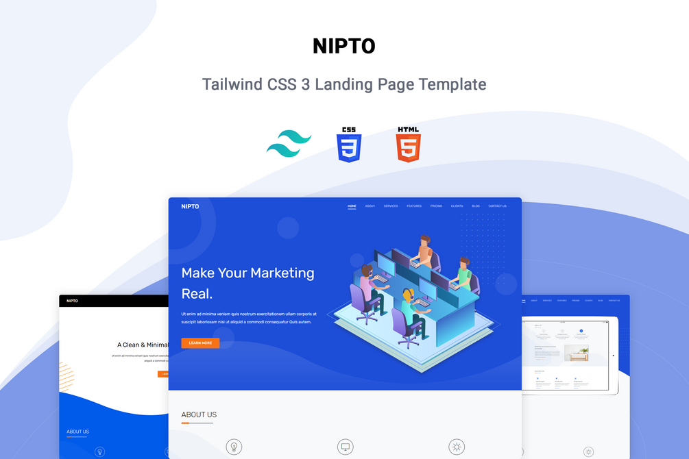 Nipto is a fully responsive landing page template for all devices for the perfect choice for your new startup or ongoing business. It is built with the latest Tailwindcss v3. Tailwind CSS works by scanning all of your HTML files, JavaScript components, and any other templates for class names, generating the corresponding styles, and then writing them to a static CSS file. It's fast, flexible, and reliable — with zero-runtime.