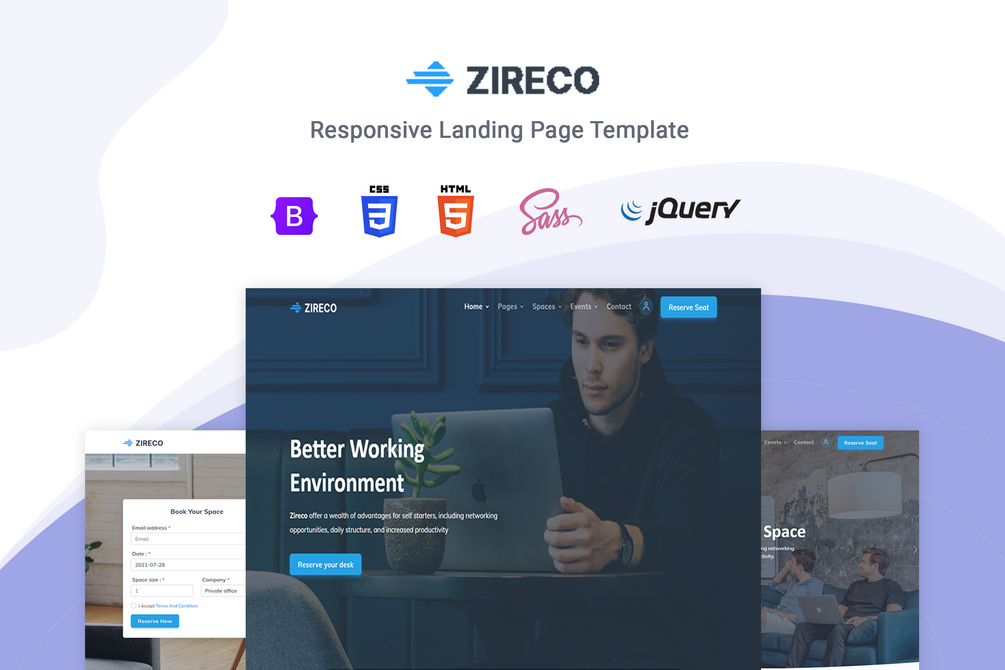 Zireco responsive landing page template is a modern template clean and responsive HTML5, Sass. This template comes with clean features, a modern and unique design that makes your website more beautiful in a modern way. This template has a professional and elegant design with a responsive layout, very easy to customize.